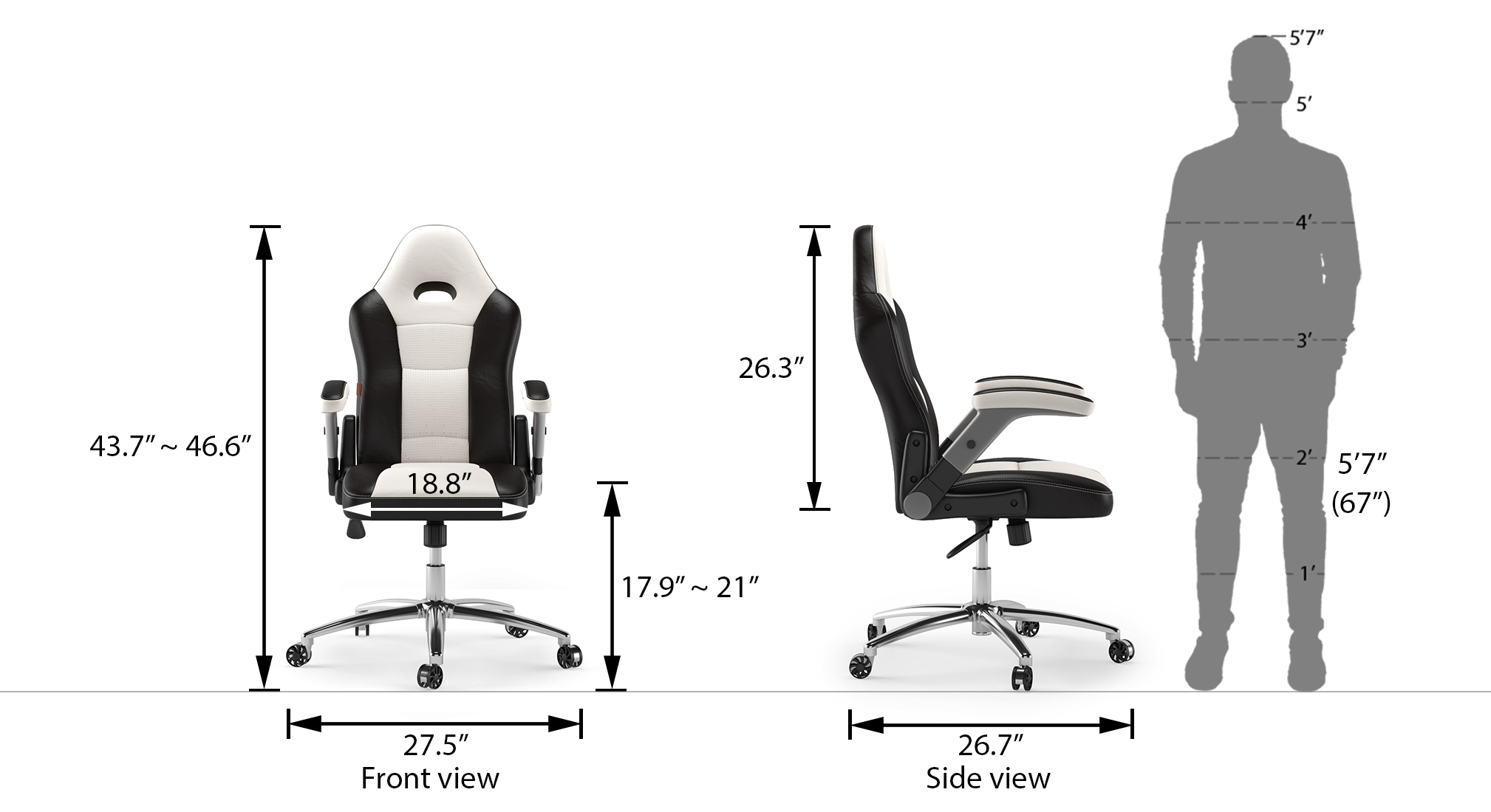 It took 100 years for the standard seat width to change from 19 inches to 21 inches. The depth of the computer desk needs to be large enough to fit a keyboard and monitor. The traditional dining room chair is 18 to 20 inches in height and 15.5 to 18 inches in width. Never rely on the picture to buy such furniture items.bcause the camera used to click them makes them very different from reality.it was easy installation.and featherlite company was available at every step to help.great customer. Anthropomorphic data (the study of calculating body measurements) was gathered, and the numbers were averaged.